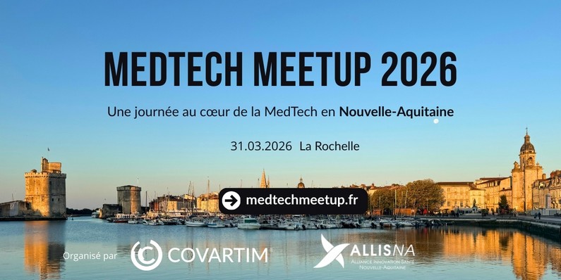 Organisée par Covartim et le cluster régional d'innovation Santé ALLIS-NA, la première édition française du MedTech Meetup donnera l'occasion à la communauté des technologies médicales de Nouvelle-Aquitaine de se rassembler autour de conférences, tables rondes et ateliers, ainsi que d'une exposition.