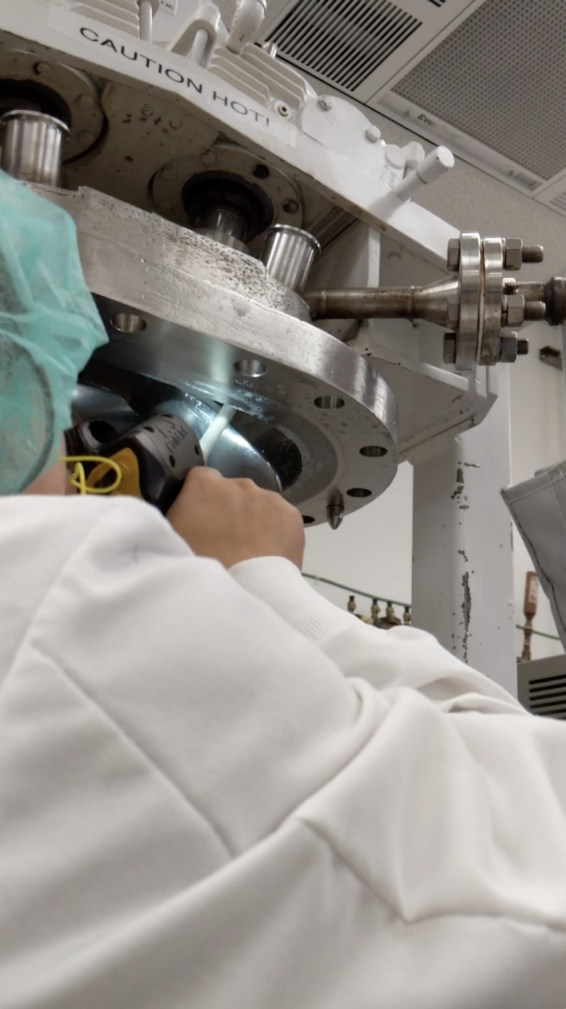 Nettoyage cryogénique de réacteur chimique chez Poly-Jet (Source : Cold Jet).